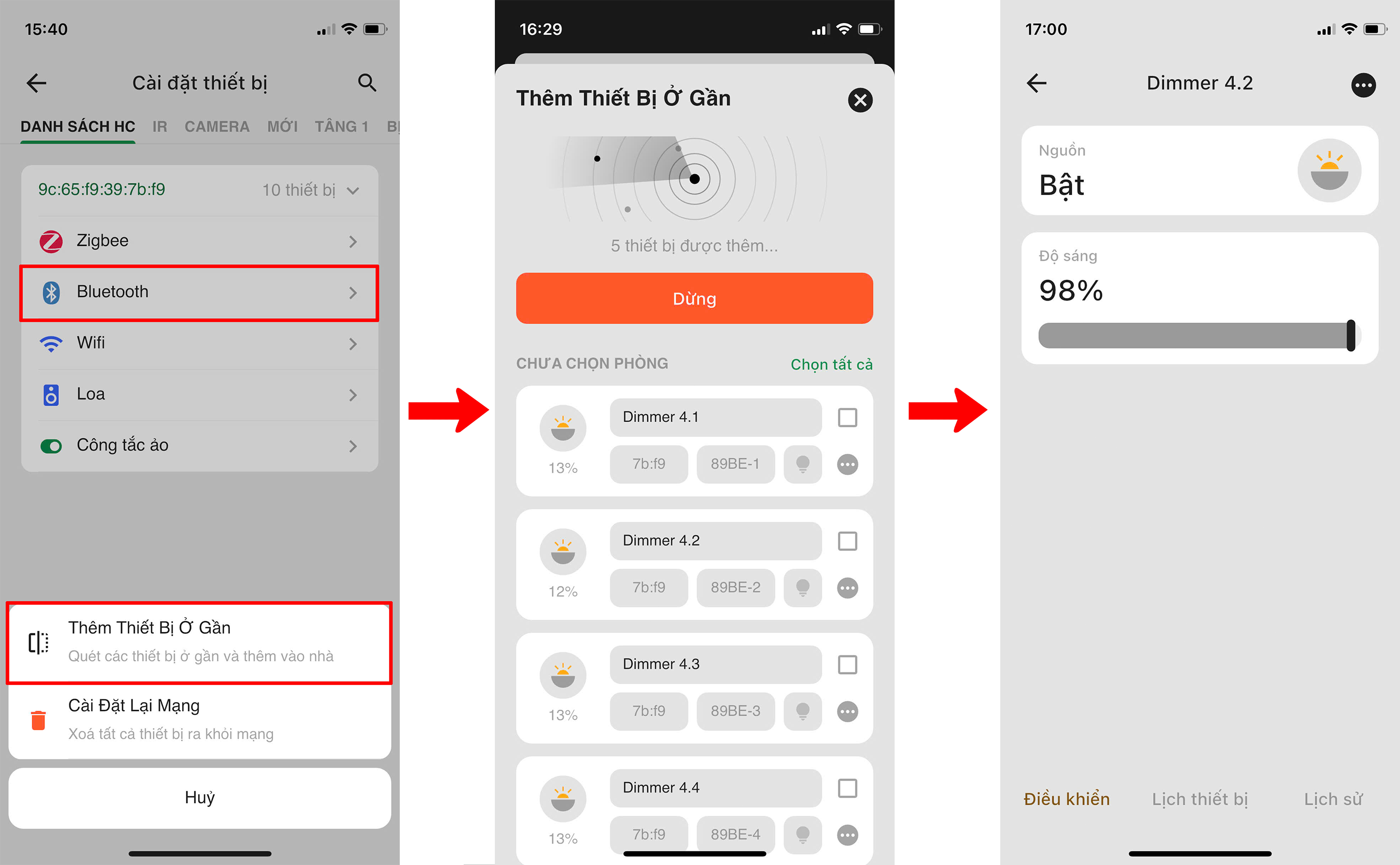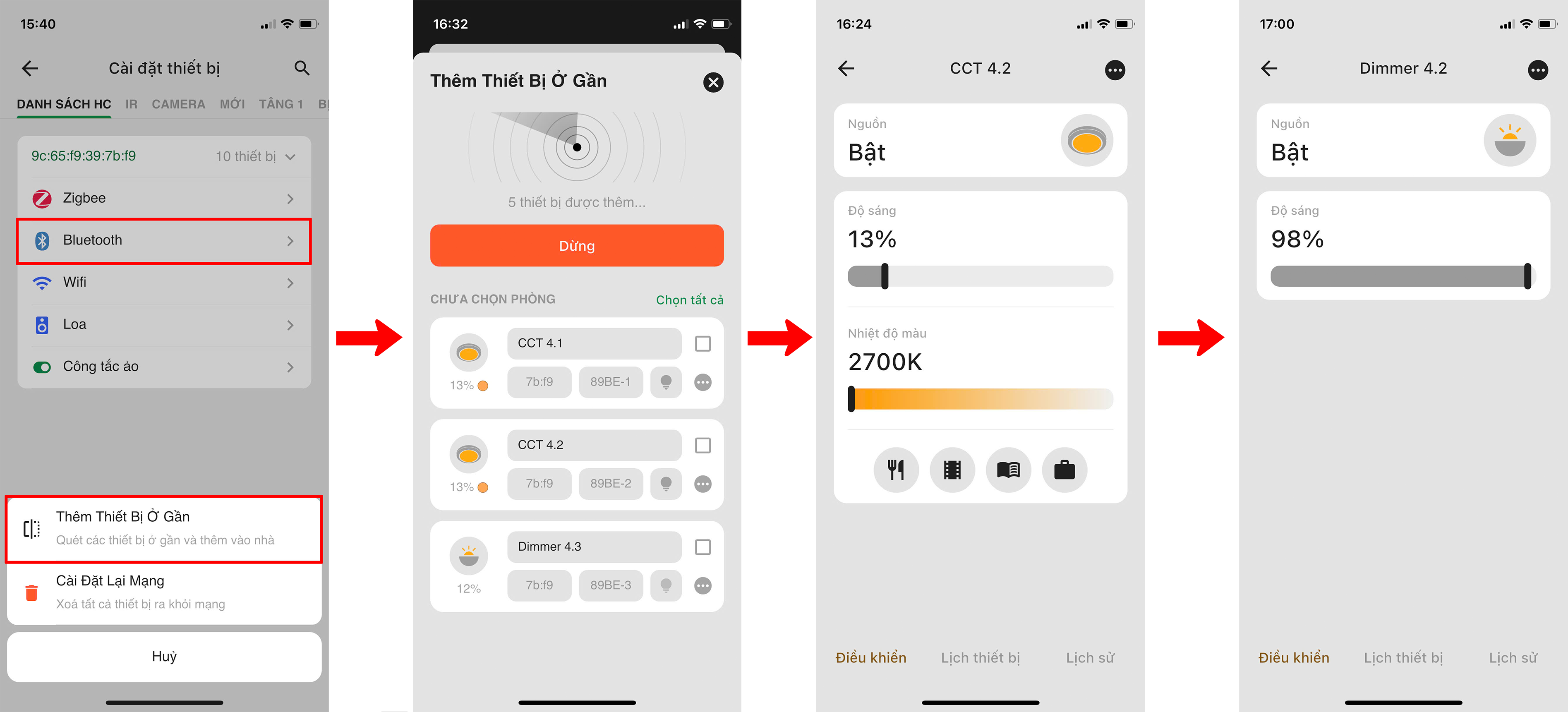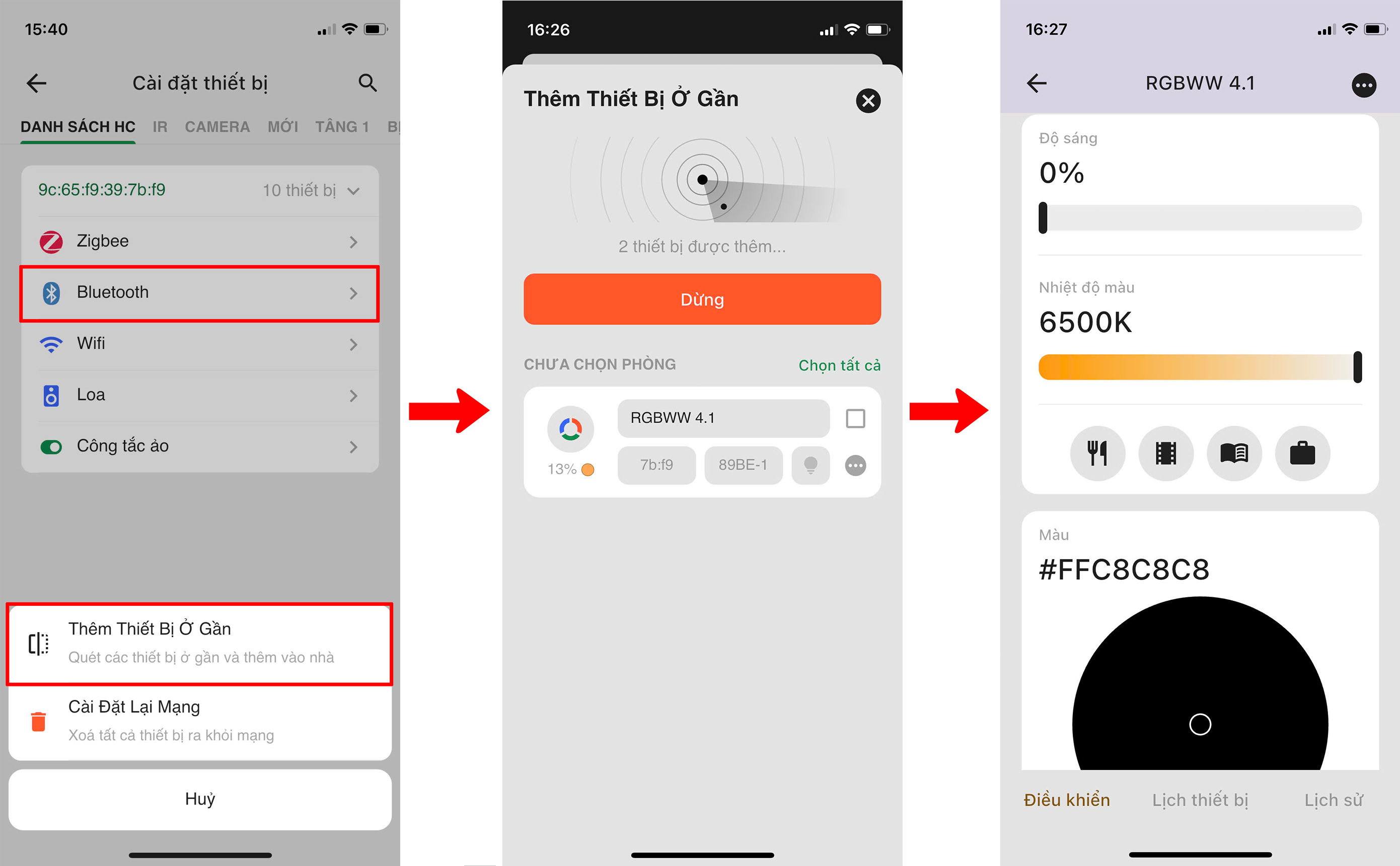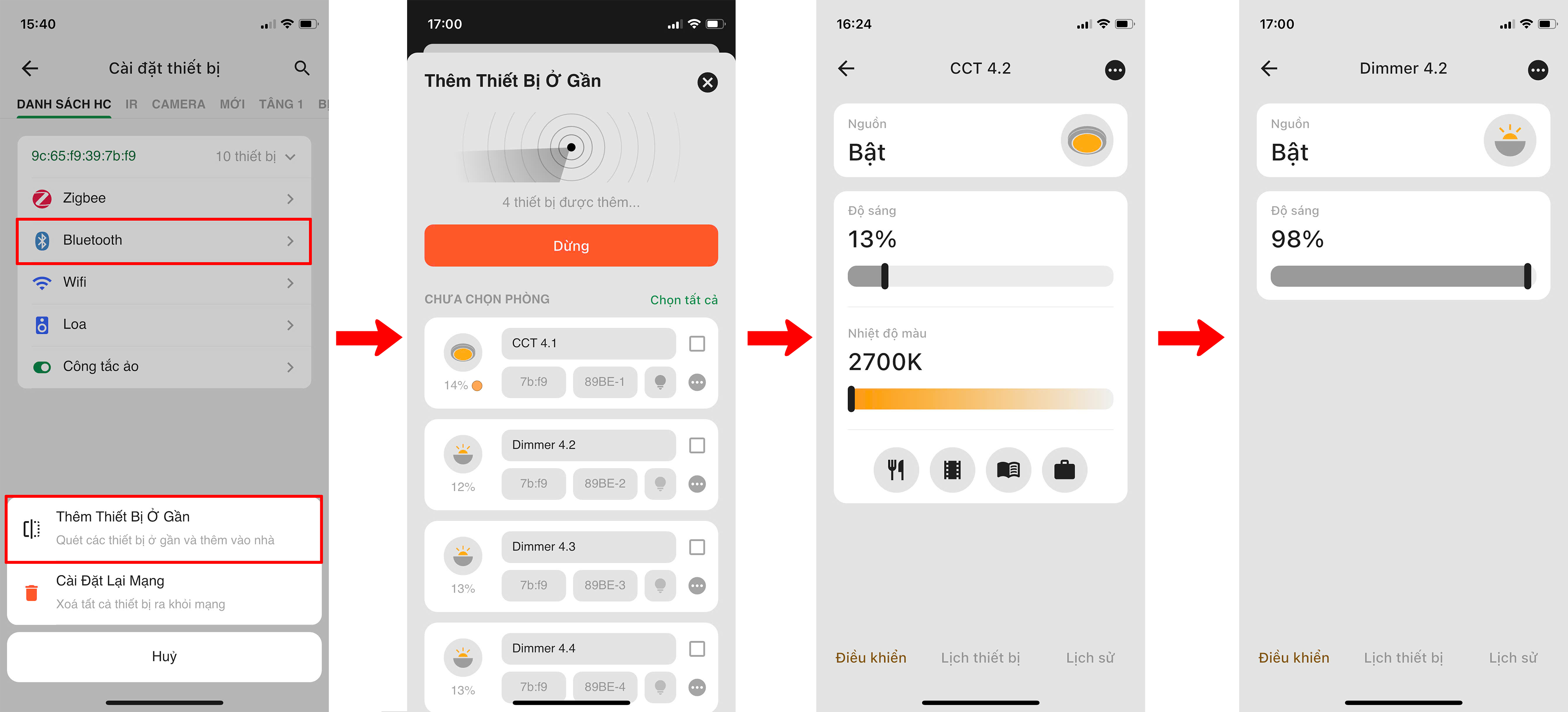 Người dùng đăng nhập vào App Lumi Life+ => Chọn “Cài đặt” => Chọn “Cài đặt thiết bị” => chọn HC => Bluetooth => Chọn “Gia nhập mạng”.