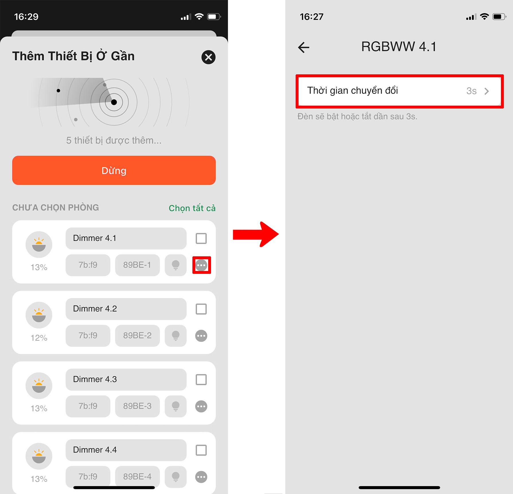 Tính năng cho phép điều chỉnh thời gian thay đổi cửa đèn khi ta điều khiển.